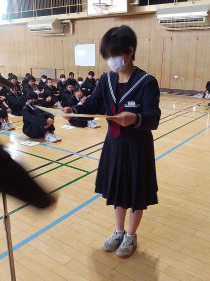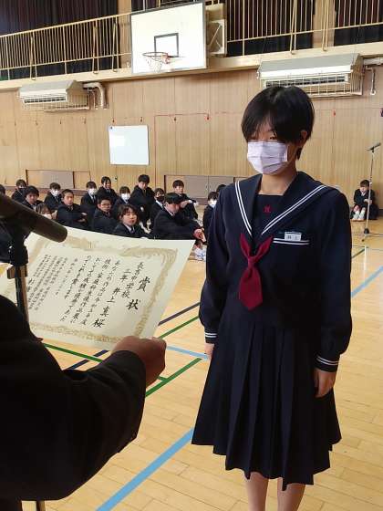 全校集会に先立ち、伝達表彰を行いました。