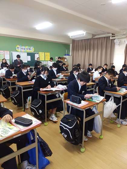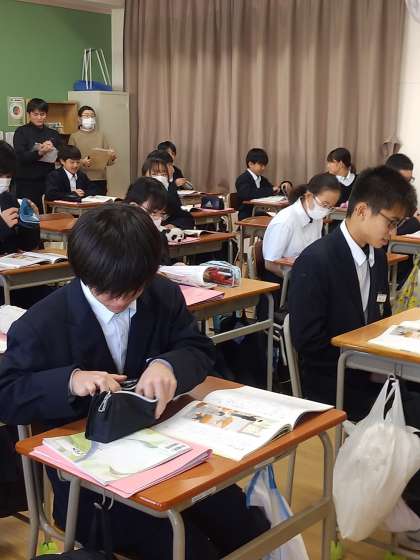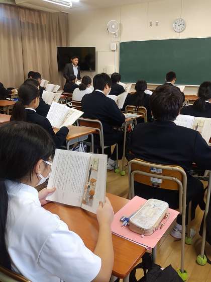 1年1組の皆さんに残ってもらい、研究授業を行いました。寺田先生の道徳の授業でした。「銀色のシャープペンシル」という題材で、人間の弱さや多面性についての授業でした。生徒からの意見もたくさん出て、活気のある、良い雰囲気の授業でした。