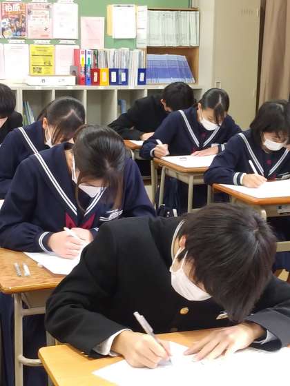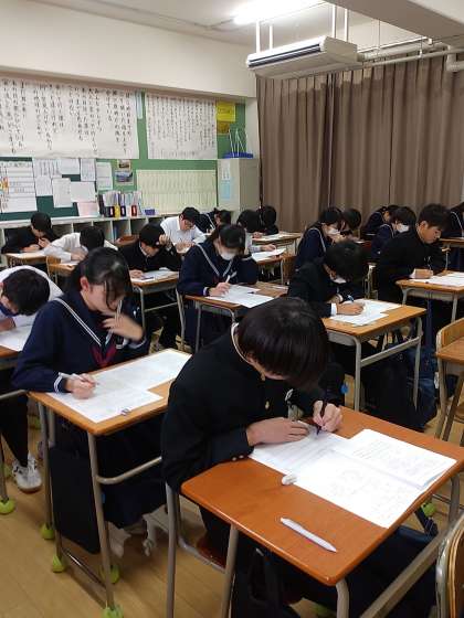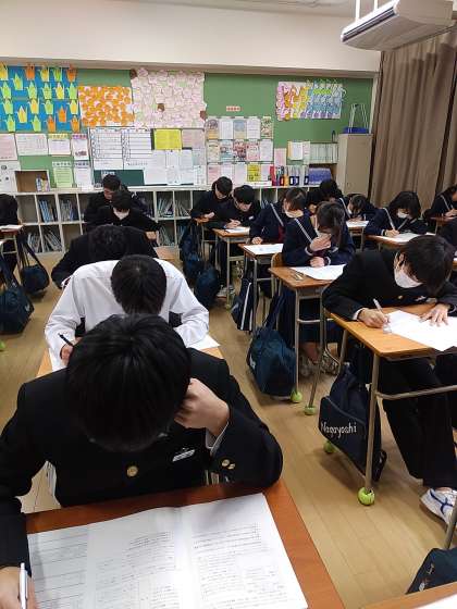 3年生で第4回実力テストを実施しました。進路にも大きく関わるテストです。今まで積み重ねをてきた力を発揮するときです。目の前の問題に集中し、持てる力を出し切りましょう。