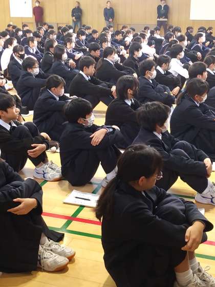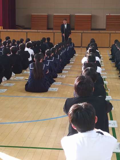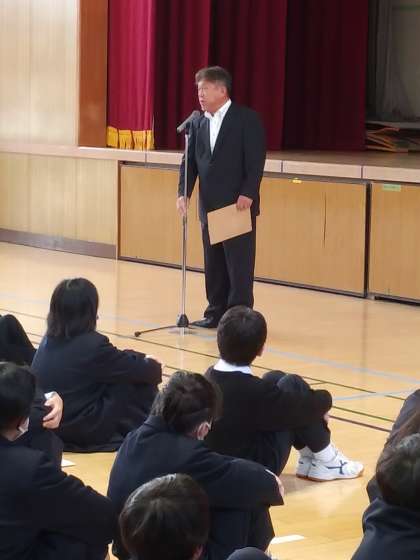 定例の全校集会を実施しました。校長先生からのお話がありました。