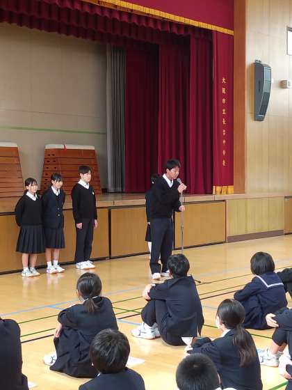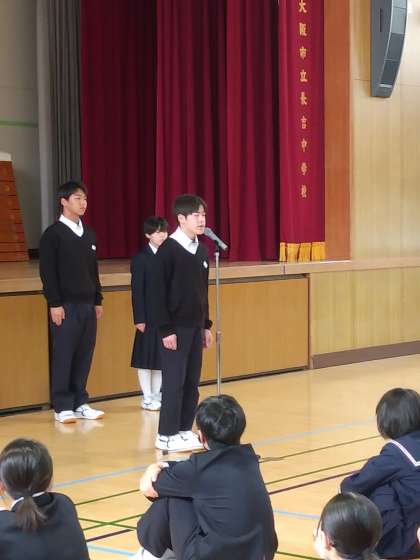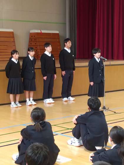 校長先生の話に続き、生徒会役員と各生徒委員会から今月の目標について報告がありました。