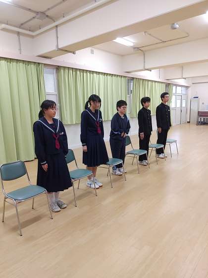 先日の3年1組に続き、3年2組で校長面接を行いました。今日は3年2組の前半を行い、13日に後半を行います。2組の生徒もかなり緊張していました。今回の経験を高校受験だけでなく、面接の機会に活かしてください。