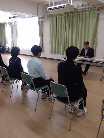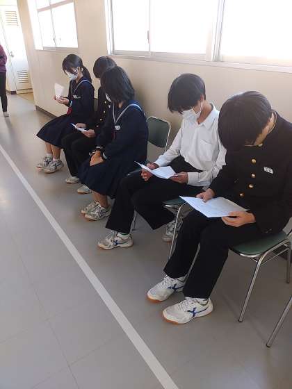 校長面接を3年2組後半で実施しました。面接室に入るときの緊張感と出てきた時の安心感は独特の雰囲気です。今回の経験をこれからの面接に活かしてください。