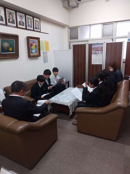 生徒会役員から、地域クリーアップ活動の振り返りや、3学期での開催に向けて話がありました。また、ペットボトルキャップ(PBC)回収活動の表彰について話があり、長吉中スマホルールについて提案がありました。