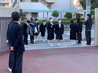 寒波襲来で底冷えのする朝ですが、子どもたちは気持ちいい挨拶を交わし登校、一日の始まりです。明日終業式を迎えますが、この2学期も、心を繋ぐ挨拶運動に取り組んだ生徒会役員のみなさん・生徒議会メンバー・有志のみなさん、早朝より草花の世話をしてくれた美化委員のみなさん、早朝よりご苦労様でした、そしてありがとうございます。3学期もよろしくお願いします。