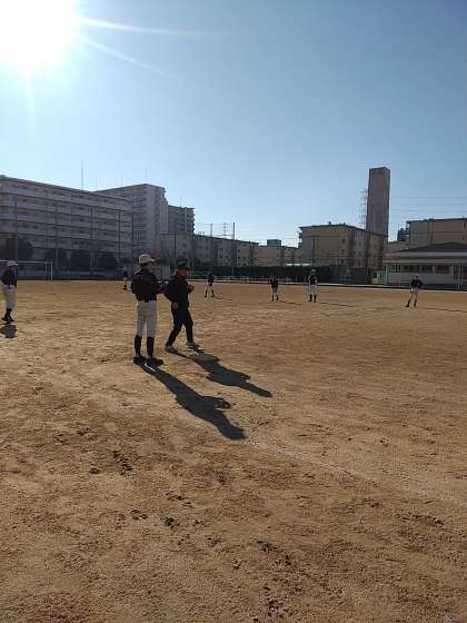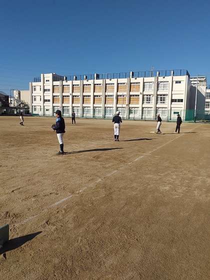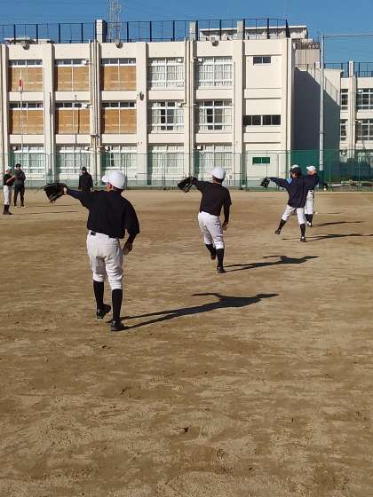 野球部は合同練習を行いました。みんなで声を出しながら白球を追いかけています。
