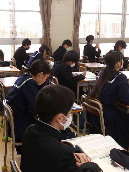 先生が教科書を範読するのをメモをとりながら聞きました。