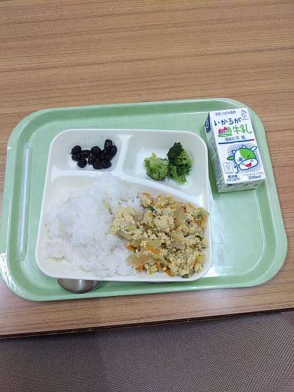 保健委員が給食放送をしてくれました。今日の給食献立にある親子丼と黒豆について調べて放送しました。