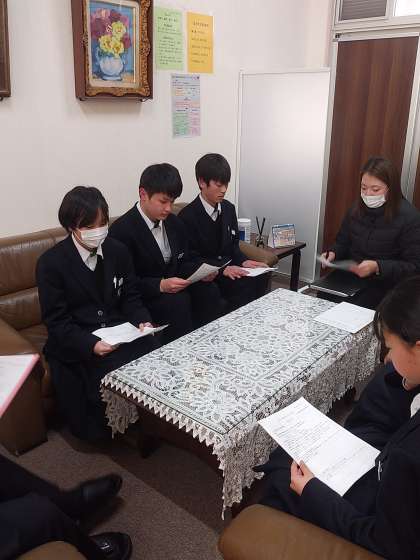 ペットボトルキャップ(PBC)回収運動や2月9日に実施した受験横断幕を掲げてのあいさつ運動の振り返りや3月16日(土)に実施予定のクリーンアップキャンペーンについての話などをしました。また、卒業式に向けての取り組みも確認しました。