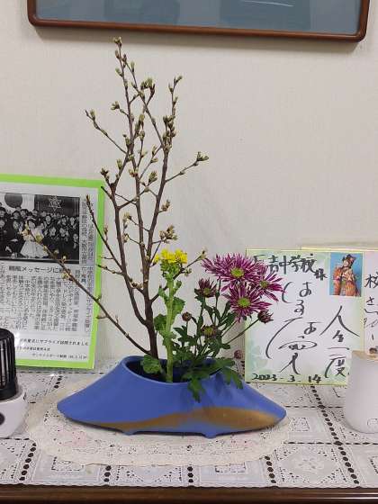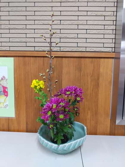 校長室と玄関に花を生けていただきました。花は桜、菊、菜の花です。元気アップコーディネーターの松尾さん、毎月明るい雰囲気にしていただきありがとうございます。