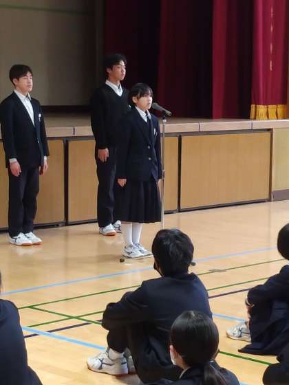 校長先生の講話に続き、生徒委員会より今月の目標の連絡がありました。