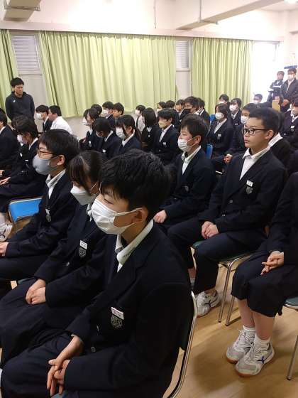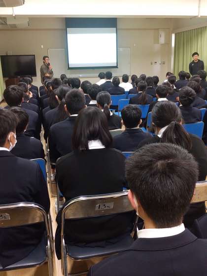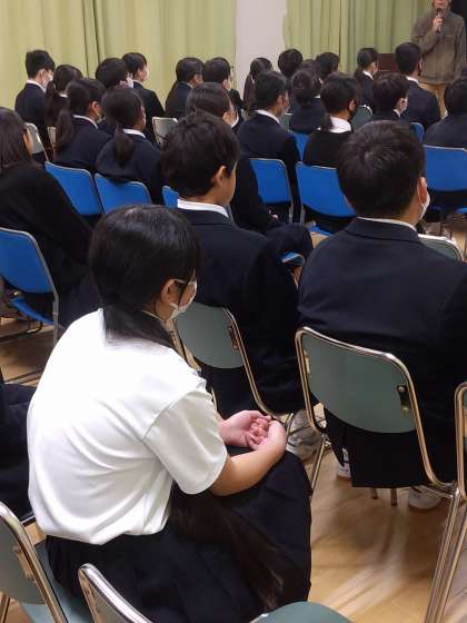 生徒は「ヤングケアラー」という言葉の意味をきちんとは知らない生徒も多く、真剣な表情で聞いていました。自分の身の回りを振り返りながら考えている様子でした。