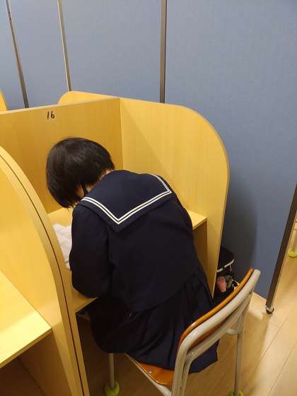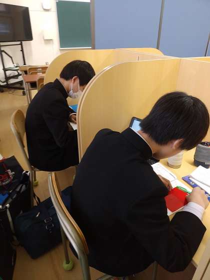 集中して取り組んでいることがよく分かります。頑張れ、長中生!