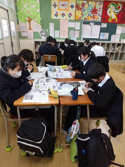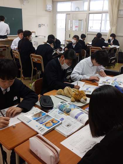 地震や地層について、班ごとに問題を解きながら進めていきました。答えが分かった班は黒板に発表していきました。とても良い雰囲気の授業でした。