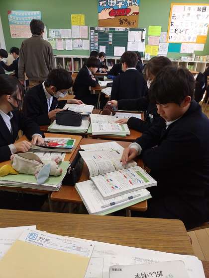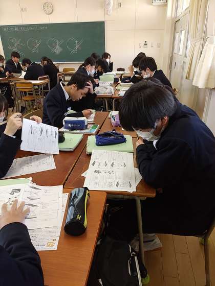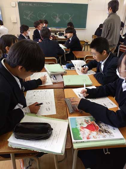 モーターの原理を勉強しました。先生の話を聞き、プリントの問題を班のメンバーで教え合いながら進めました。すごく良い雰囲気で、分からない問題も生徒どうしで教え合い、学びを深めていました。