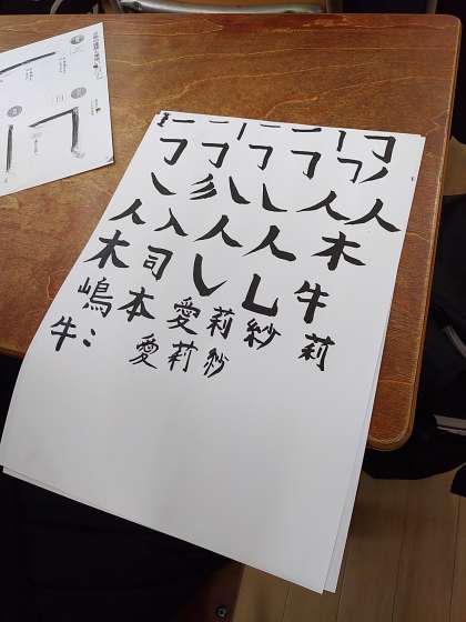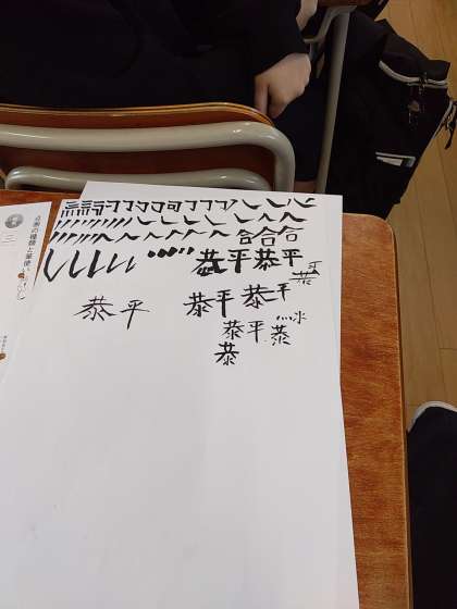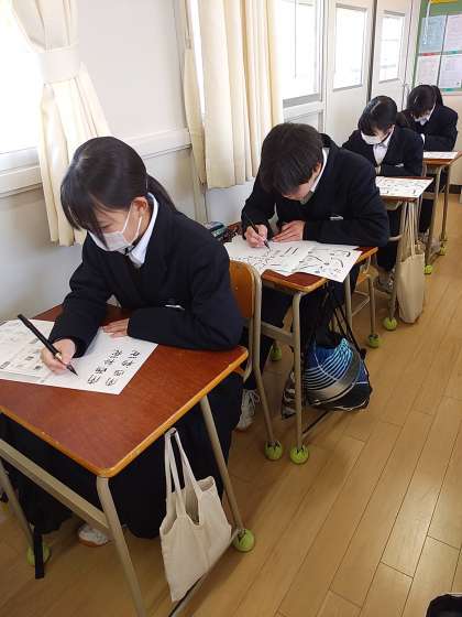 毛筆の授業をしました。先生に教えてもらいながら、少しずつできるようになっていくことが楽しそうでした。得意な生徒はすごく集中して、どんどん進めていました。