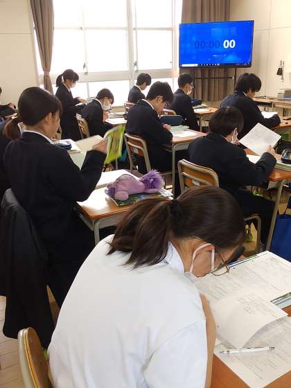 長文読解に取り組みました。時間を計って解いた後、、長文を読むときのポイントはどこにあるのかを説明しました。キーワードとなる英単語をどのように見つければよいのかを考えました。