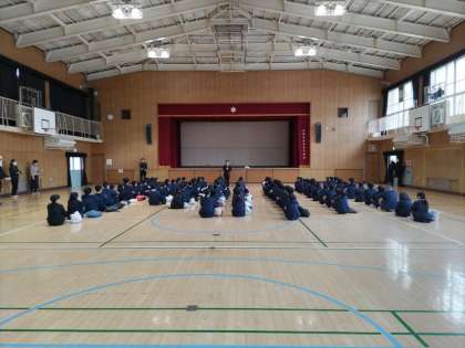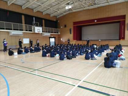 令和6年度の新入生に集まってもらい、入学前オリエンテーションを行いました。緊張した表情で一生懸命に話を聴く姿に初々しさを感じます。もうすぐ始まる中学校生活に期待と不安が入り混じっているのが良く伝わってきました。