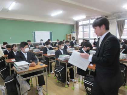 在校生、新入生それぞれの代表挨拶と式後の初学活の様子です。
