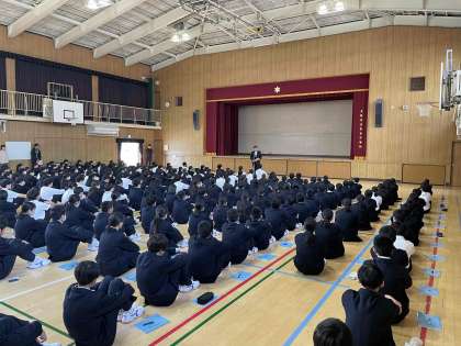時を守る(時間を守りきることで新たな時間を生み出すことができます)、場を清める(自分のため仲間のためみんなのため清掃活動と美化の心をもつこと)、礼を尽くす(挨拶、返事、言葉遣い、感謝の心をもつこと)、『時を守り場を清め礼を尽くす』という、(当たり前の事を当たり前に徹底してやっていくことで一流になるという)『凡事徹底』から『凡事一流』を今年も目指してください。