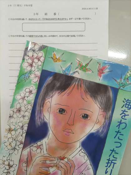 絵本「海をわたった折り鶴」の読み聞かせから、平和への思いを深め、