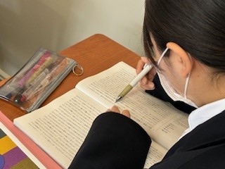 生徒は作者の気持ちや思いが記されている箇所をチェックしながら聴きとりました。