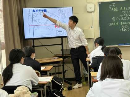 地図上の緯度・経度について学びました。