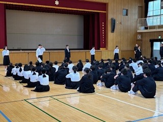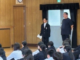 初めての定例1年学年集会がありました。これから毎週水曜日に行われます。