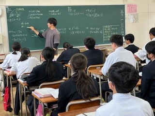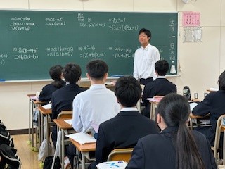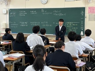 その後、平野先生のクラスでは、学び合う姿も見られ知識の定着を図りました。また、松岡先生のクラスでは、指名された生徒がどういうふうに解いたかをそれぞれ発表しました。