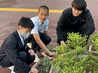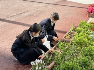 今日の当番は1年生と3年生で、しっかり協力して作業していました。