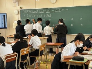 食物は消化される過程でどのように変化していくかを「本時のめあて」として、まとめの問題をグループで学び合いました。