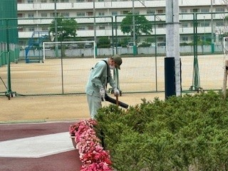 子どもたちが気持ちのいい学校生活を過ごせるように管理作業員さんが朝早くから校内の環境整美をしてくれています、ありがとうございます。
