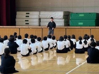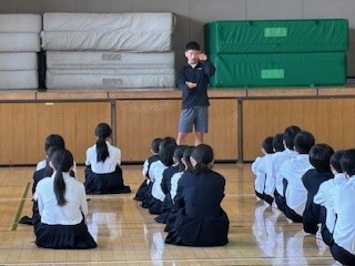 生徒指導主事藤田先生から、一泊移住後の学校生活の振り返りとこれから期待することのお話がありました。