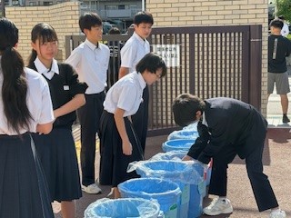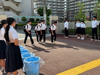 いつもの登校風景です。美化委員の草花の世話では、男子が休みだったので一人では大変だろうと朝早く登校した生徒が手伝ってくれました。ありがとう。