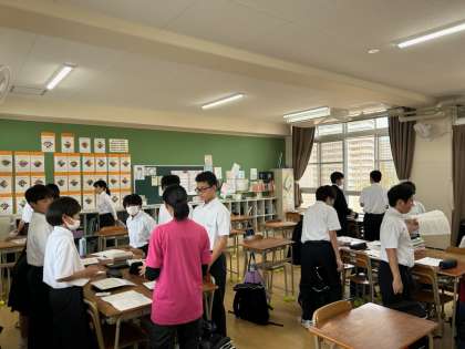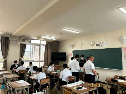 2年生は明日に行われる職場体験の事前訪問について、各事業所に分かれて事前指導をしています。