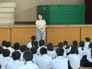 鳥羽瀬先生から、「大学卒業後すぐに教員としてスタートした時の思い・経験から、もう無理と自分で限界を決めず続ける努力を。しんどい時には、先生から周りの友だちから、助言やがんばれるヒントももらえます。先ずはやってみるチャレンジ精神を持ちましょう。」