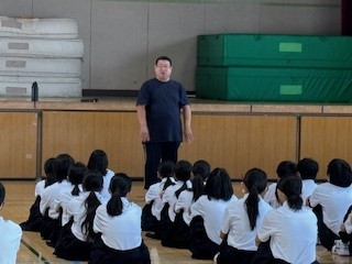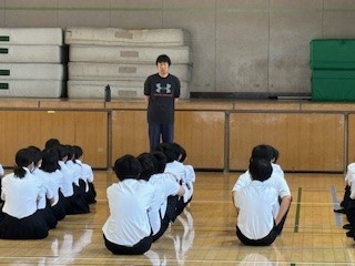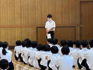 定例の1年学年集会です。中西先生から「間に合う」をキーワードにお話がありました。柳沼先生から明日の避難訓練についてのお話がありました。