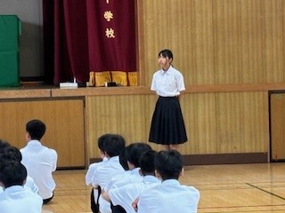 林先生から「ふだんの学校生活について気がついたこと、気をつけることと、一人ひとりが過ごしやすい学びやすい学年・学校にしていくには」についてお話がありました。