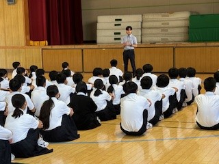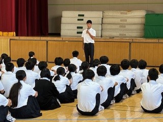 平野先生から、「文化発表会に向けて学年が取り組むSDGsについて、その説明と夏休みでの調べ学習課題について」