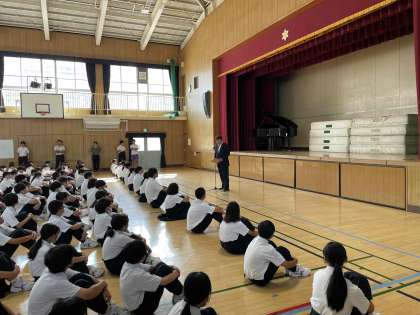 1ヶ月ぶりに全校生徒が集まり、始業式が行われました。