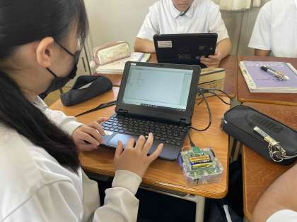 模型の車に、線の上を走るようプログラミングしました。