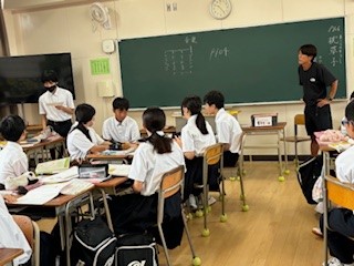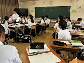「言葉の発見」として上位語・下位語について、先生からの説明の後、配布されたプリントに従って個人で考えた後、グループで話し合い代表が発表しました。抽象的な言葉から具体的な言葉へと表現・言葉の深みを学びました。