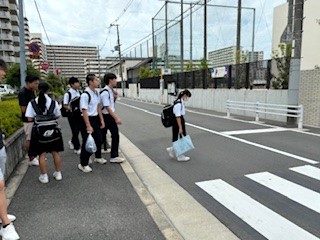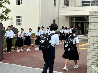 曇天のまだまだ蒸し暑い朝です。気持ち良い挨拶を目と声で交わして今日も元気に登校です。