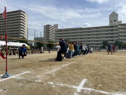 団対抗で勝った赤団とPTAとの白熱の戦いは