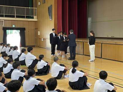 先日の選挙にて全校生徒から信任を受けた令和6-7年度生徒会役員5名に対し、校長先生から認証状が手渡されました。
