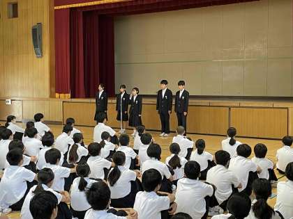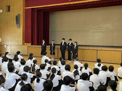 その後、旧生徒会長の日高さん、新生徒会長の河合さんから全校生に向けたメッセージがそれぞれに述べられました。