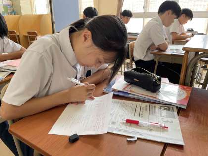習熟度別に、先週受けた英検の振り返りなどをしました。