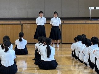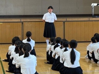 学代から「今月の目標」について、図書委員から「読書のすすめ」についてそれぞれ話がありました。