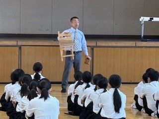 神谷先生から、「技術の実習ではみなさんの取り組む気持ち、聴く姿勢の違いで製作する作品が変わってきます。みなさんの可能性を広げるためにも日頃の授業だけでなく学校生活全般をもう一度見直してみましょう」とお話がありました。
