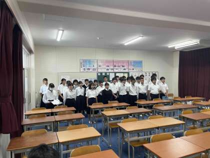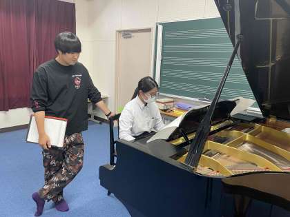 3年生は2組が音楽室で合唱練習をする間、1組は教室で学年劇の小道具作りをしていました。